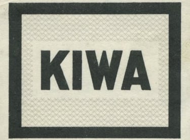 Los fabricantes podían utilizar la marca Kiwa en los productos inspeccionados y aprobados. El sello para tuberías comenzó a finales de los años 40 en dos formas: una con ondas para tuberías de agua corriente y otra con una llama para tuberías de gas. Llevaban el nombre KIWA y una letra o nombre para indicar la fábrica que los producía.