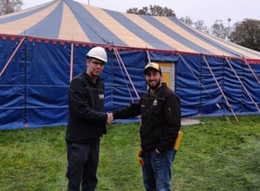 Links Roland Robben, inspecteur Kiwa KVVM en rechts Geert Waterschoot, Operations Manager Bij Van Ham Tenten & Podia.