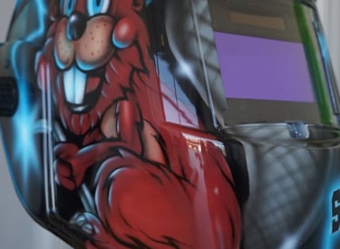 Glada vinnare av specialframtagen svetshjälm