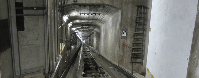Nybohovshissen i Stockholm ska renoveras och byggas ut. Men den gamla snedhissens tunnel är till åren, och Kiwa Inspecta fick uppdraget att under ett par sommarnätter ta tempen på betongen i en klassisk bergbanemiljö.