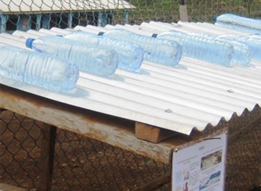 Han berättar att metoden kortfattat går ut på att fylla en PET-flaska med vatten, lägga ut den i solen och låta solens UV-ljus rena vattnet.